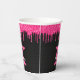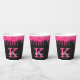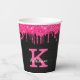 Girly Black Hot Pink Glitter Drips Monogram Party Paper Cups