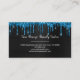 Girly Black Neon Teal Blue Glitter Drips Monogram Business Card