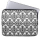 Girly Black WHite Floral Damask Pattern Laptop Sleeve