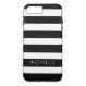 Girly Black White Stripes Custom Name Monogram Case-Mate iPhone Case