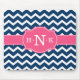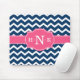 Girly Blue Chevron Pink Monogram Mouse Mat