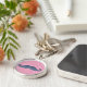 GIRLY BLUE MUSTACHE PINK GLITTER PHOTO KEY RING