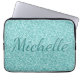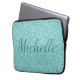 Girly Blue Sparkle Monogram Name Laptop Sleeve