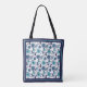 Elegant and modern tote bag with turquoise and blue floral pattern. This cute bag has a blue and turquoise border. Personalise the monogram with your initial. Great idea as a birthday, Christmas or Mother’s Day gift.
