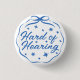 Girly Blue Whimsical Doodle Bow Hard of Hearing 3 Cm Round Badge