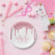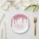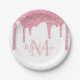 Girly Blush Pink Glitter Drips Monogram Birthday Paper Plate