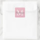 Girly Blush Pink Glitter Stripes Monogram Square Sticker