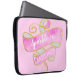 Girly and pretty blush pink laptop sleeve featuring the inspiring quote "Sparkle on, Darling" in an elegant white script, with a pink ribbon banner background and a gold glitter sparkles outline.