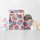 This fun and girly red, white, and blue cupcake wrapping paper in a soft blush pink is hand-drawn in black ink and bursting with festive charm. This wrapping paper features a pattern of adorable patriotic cupcakes topped with strawberries, cherries, and cute 4th of July toppers and sprinkles. The blush pink background makes this adorable wrapping paper ideal for little girls, July Baby Showers, New Moms and July Birthdays!