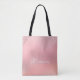 This modern tote bag features a blush pink rose gold faux silver glitter sparkle design. Personalise it with a name.