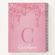 Girly Blush Pink Sparkle Glitter Drips Monogram Notebook with fashion faux blush pink glitter drips on a chic bubblegum pink background with your custom monogram and name. Designed by Cedar and String. If you need assistance or matching items, please contact us at cedarandstring@gmail.com
