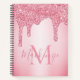 Girly Blush Pink Sparkle Glitter Drips Monogram Notebook