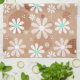 Girly Brown Daisy Flower Pattern Cute Aqua Dots Tea Towel