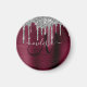 Girly Burgundy Dripping Glitter Brush Metal Name Magnet