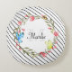 Girly Butterfly Floral Thin Black Stripes and Name Round Cushion