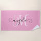 Create your own elegant girly script calligraphy monogrammed light pink custom beach towel.