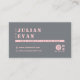 The front of the card features a clean and modern layout, with key information presented in a legible and visually appealing manner. A customisable tagline allows you to succinctly communicate your brand's message. Contact details are presented in a legible font. Social media icons are also included, reflecting the importance of online presence in today's business world. The blush pink accents against the grey background create a visually appealing and feminine aesthetic.