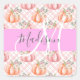 Girly and chic monogram square sticker with spring / fall floral pink and peach pumpkins and a white and pink background. Your custom name and monogram are written in an elegant hand lettered grey and white script with a pink background. You can change the text colour and font style and size using the customise option.