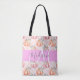 Girly Chic Floral Pink Peach Pumpkin Monogram Name Tote Bag