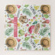 Tropical beach towel with watermelon, ice cream, hat, bag, cocktail.
