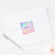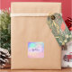 Girly and cute square sticker with a colourful pink, peach, purple, lilac, blue and green unicorn rainbow hearts sparkly background. Your custom name and monogram are written in an elegant hand lettered script with a lilac purple unicorn paint brush strokes stripe background. A perfect birthday or Christmas gift!