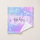Girly and cute wash cloth with a colourful pink, purple, lilac, blue and aqua unicorn rainbow hearts sparkly background. Your custom name and monogram are written in an elegant hand lettered script with a lilac purple unicorn paint brush strokes stripe background. A perfect birthday or Christmas gift!