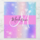 Girly and cute wine label with a colourful pink, purple, lilac, blue and green unicorn rainbow hearts sparkly background. Your custom name and monogram are written in an elegant hand lettered script with a pink background. A perfect birthday or Christmas gift!