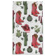 This festive girly country cowgirl Christmas gift bag features a pattern of hand-drawn western illustrations of cowgirl boots, cowgirl hats, cactus, mittens & holly berries, all against a background full of tiny stars.