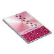 Girly Customised Dog Paw Print Design. The top section is a modern metallic background with vertical small dog prints. Across the lower third is a pink name plate with horizontal heart diamonds, this is the area where you can personalise with your text of choice. The bottom section has cute girly heart and dog print pattern over pink glitter. Supreme Customs Art & Design Studio.