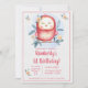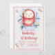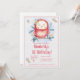 A cute watercolor bird with pink text decorates this birthday invitation.