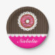 Girly Cute Pink & Brown Doughnut Personalised Name Paper Plate