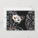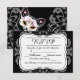 A beautiful and classy RSVP card with A cute Day of the Dead kitty cat on a grey / grey damask black background, great for Halloween or dia de muertos. Made to include speciality needs and number attending. Have fun! be sure to check out the matching invitations.