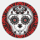 My version of a super cute sugar skull in white, red, and black with lots of elegant accents on a coordinating background. Shown here on stickers.