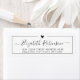 Elegant, Modern Girly Hand Lettered Script Black and White Return Address Labels. Featuring a pretty hand-lettered swash tail font script name template, little heart shape on the top, around thin line frame on white colour background. Easy to personalise them with your names and return address info.