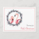 A pair of cute flamingos in a wreath. The words, dreaming of a pink Christmas is on the front. The reverse, reads, 'wishing you a flamazing holiday season. You can change this if you wish. There's also a standing flamingo on the reverse.