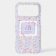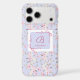 Girly Floral Blue Pink Bow Coquette Monogram iPhone 17 Pro Max Case.