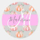 Girly Floral Grey Pink Peach Pumpkin Monogram Name Classic Round Sticker