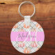 Girly Floral Grey Pink Peach Pumpkin Monogram Name Key Ring