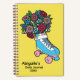 This design features a beautiful illustration of a roller skate, overflowing with flowers. The flowers include aster, forget-me-not and lily of the valley. You can add your own name, title and year on the front cover. On the back is a pattern of forget-me-nots with picked petals. The background colour can be changed in the Zazzle editor screen.