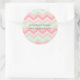 Girly Geometric Pattern pink and mint chevron Classic Round Sticker