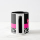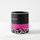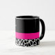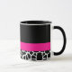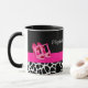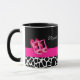 A cute pink and black animal print mug with a graphic black and white giraffe pattern and a pair of girly pink pumps. Personalise this cute shoes design by adding the name of any teen girly girl.