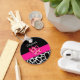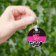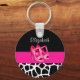 A stylish pink and black animal print keychain with a graphic black and white giraffe pattern and a pair of girly pink pumps. Personalise this cute fashion design by adding the name of any teen girly girl.