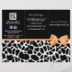 Spread the word about your new fashion boutique with this girly black and white giraffe print trifold brochure flyers with a picture of a cute orange ribbon tied into stylish bow. Personalise this trendy animal print design by adding the name of your boutique and business information. Perfect for a price list or company overview. Flat printed image, NOT actual bow.