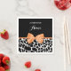 Girly black and white giraffe print paper napkins with a cute orange ribbon tied into a stylish bow. Personalise this trendy animal print design by adding your name. Flat printed image, not actual bow.