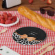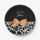 Girly black and white giraffe print paper plates with a cute orange ribbon tied into a stylish bow. Personalise this trendy animal print design by adding your name. Flat printed image, not actual bow.