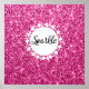Girly and glam hot pink glitter sparkles poster with the word "Sparkle" in black and a white background with white hearts.