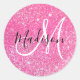 Girly Glam Hot Pink Glitter Sparkles Monogram Name Classic Round Sticker