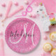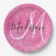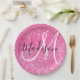 Girly Glam Hot Pink Glitter Sparkles Monogram Name Paper Plate