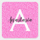 Girly Glam Hot Pink Glitter Sparkles Monogram Name Square Sticker