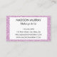This chic, girly and glam business card has a lilac purple glitter sparkles background on both sides. On the front of the business card is your first name in an elegant black script with a large monogram initial in white behind it. Then on the back is your name, job title and contact details with a white background. Easily personalise this business card. Click "customise further" to change the text colour and font style and size. This business card is perfect for a makeup artist, hairstylist, beauty consultant, events planner or salon owner.